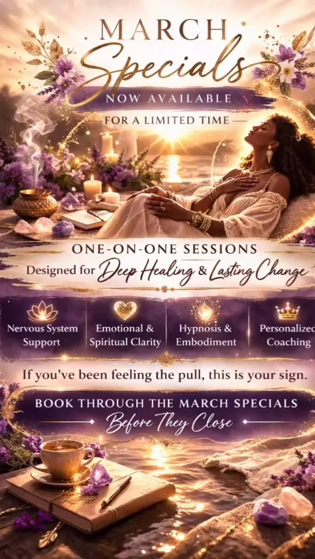 Sessions can be 60, 90, or 120 minutes and may be done from the comfort of your home via Zoom, or in person by request. Each session blends conversation, guided hypnosis, imagery, learning, and goal setting to help you quiet the old stories, reconnect with your inner wisdom, and rise into the life youโve been longing for.